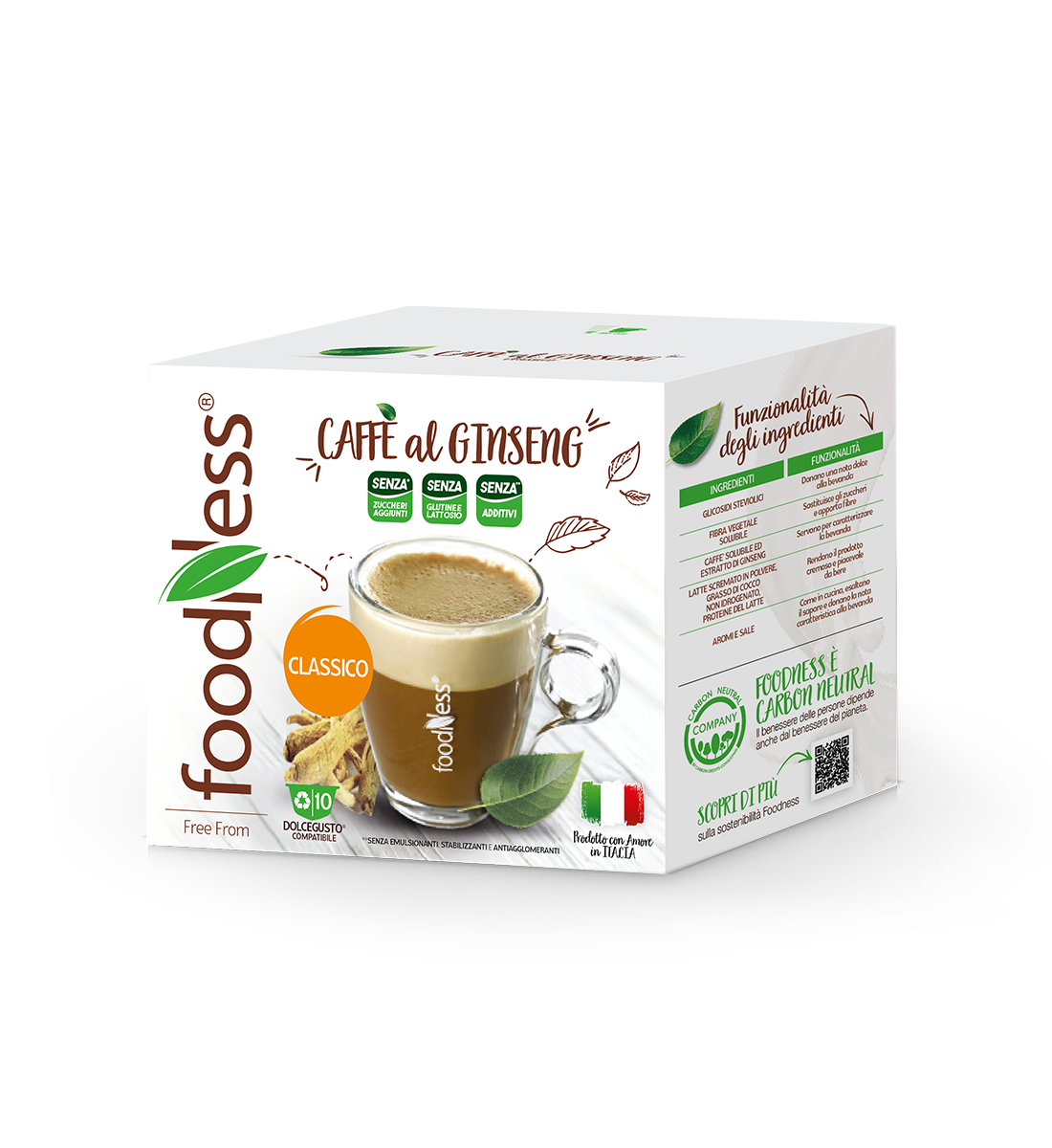 *Nespresso® e *Nescafé® *Dolce Gusto® sono marchi registrati di Societè des Produits Nestlè® SA. Foodness Spa è produttore autonomo non collegato alla Societè des Produits Nestlè® SA. La compatibilità delle capsule Foodness è funzionale all'utilizzo con macchine da caffè ad uso domestico Nespresso® - Nescafé® Dolce Gusto®.